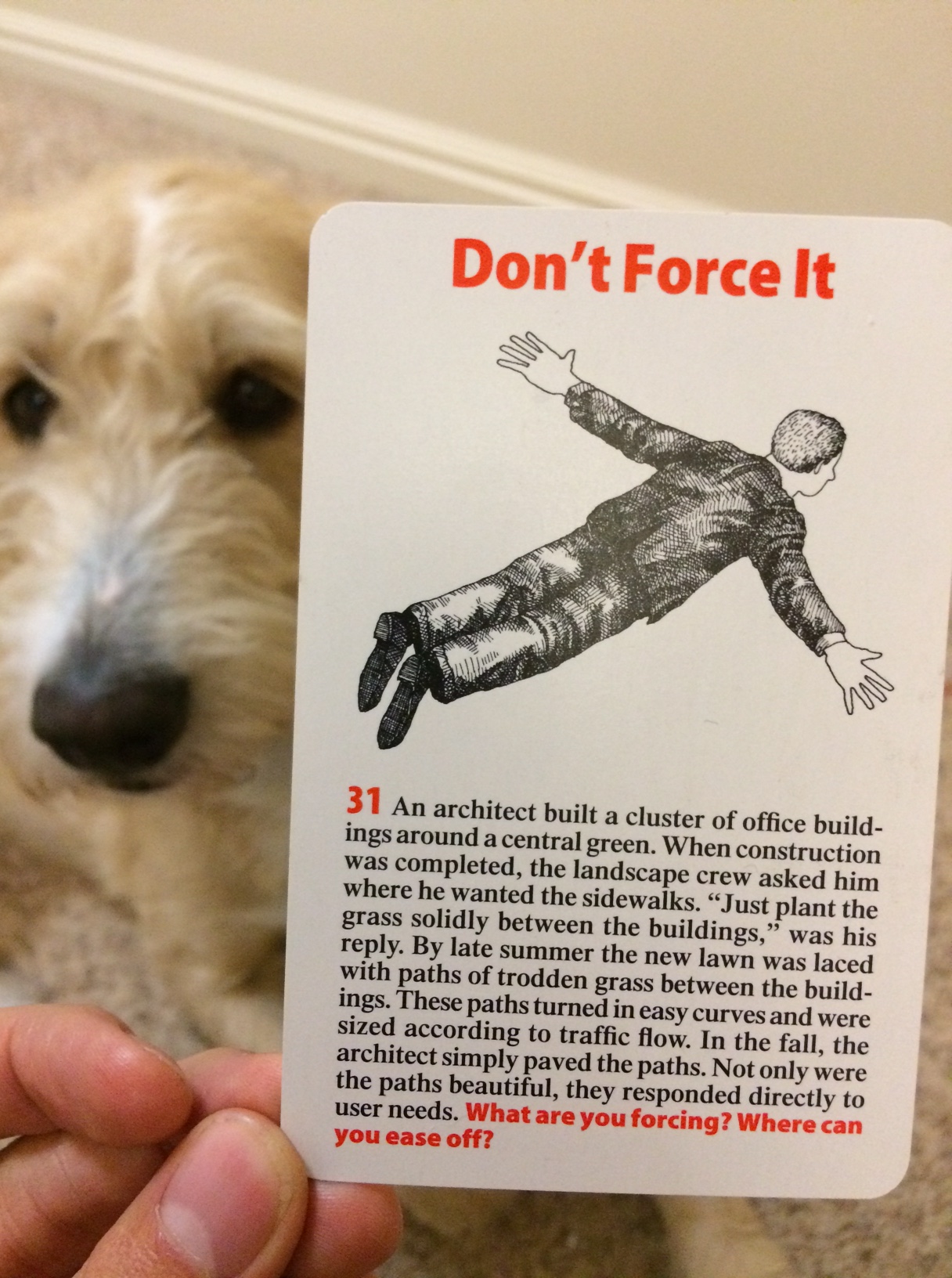 I have a little deck of cards on my desk at all times called the Creative Whack Pack, created by the legendary (or Legend Dairy–Patent Pending) Roger von Oech. Back in college, I took a marketing class in which the whack pack was a required book (item?). Good call, sir professor.